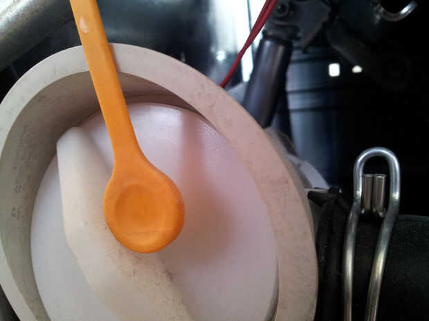Es una buena idea para abrir la tapa del filtro en esta etapa y nota la ranura que la puerta de emergencia naranja se alimenta a través de. Usted tendrá que reemplazar en el mismo lugar más tarde.