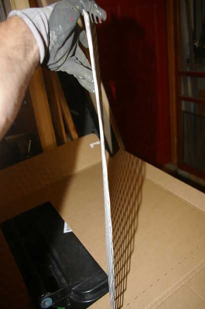 Antes de cualquier medida o corte, que necesitaba determinar que orientación de la malla me dio la fuerza mejor. Ya sé que sería añadiendo soporte a lo largo de los lados largos, necesitaba la malla para ser orientado para darme la menor cantidad de inclinarse desde delante hacia atrás. En este caso (y no puede decir de las fotos), cuando las aberturas del acoplamiento más estuvieron orientadas al objetivo de adelante hacia atrás, había mucho menos inclinación en comparación con la otra dirección sobre la misma cantidad de presión. Además al hacer esto, no tiene que preocuparse de añadir soporte adicional en los bordes izquierdos y derecho...