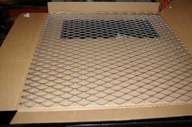 He encontrado una pantalla de malla de metal desplegado de 24 "x 24" en una de las tiendas grandes de la caja que era solamente alrededor $15. Puede haber tamaños más grandes disponibles, pero esto es lo que tenían y pensé que el precio era adecuado para este proyecto y el tamaño estaría razonablemente cercano.