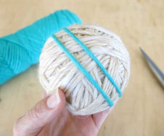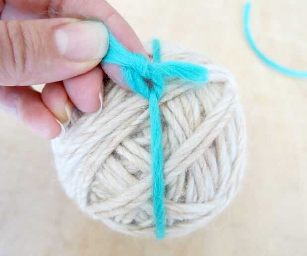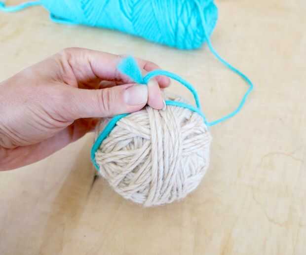 Inspirado en juegos de la bola de Bocce italiano, utilicé lana color para añadir algo de diversión adorno. Atar y remetiendo los extremos igual metido la bola termina.