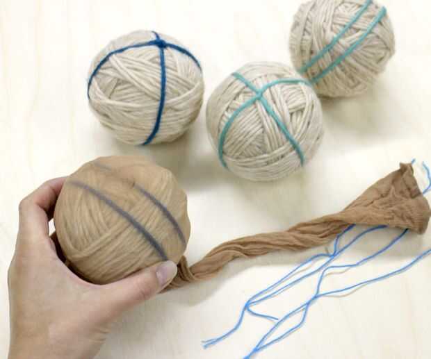 - Cosas suavemente la primera bola en el extremo de una manguera panty pierna o rodillas, cuidando de no mover los patrones decorativos hilado si usted decide hacer eso.