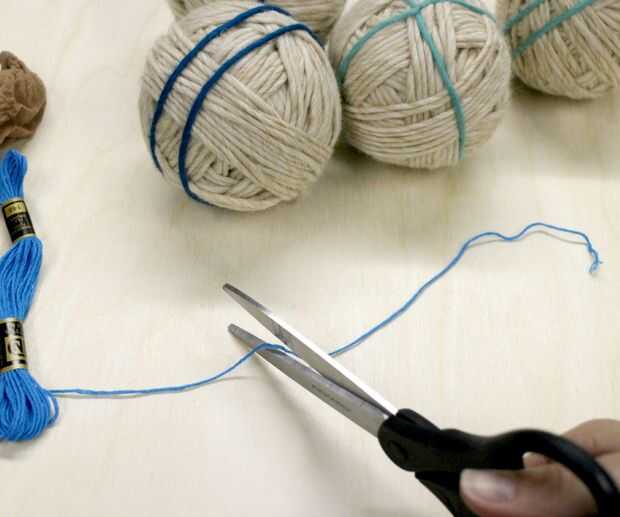 - Cortar cuatro 7-8" de acrílico hilo hilado o bordado.