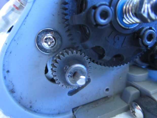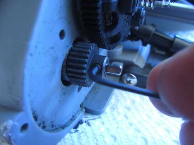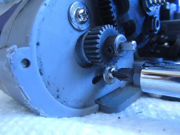 La primera orden del día es el nuevo motor en su lugar y asegure el tornillo superior con un destornillador de estrella. Luego apriete el piñón con la llave allen y para acabar, poner en el tornillo inferior para que el motor gira a un lugar que el piñón no demasiado cerca a la espuela y no muy lejos. (demasiado cercano resistencia y calentar los engranajes, demasiado hacer los engranajes descuidado y desgastan más rápido)