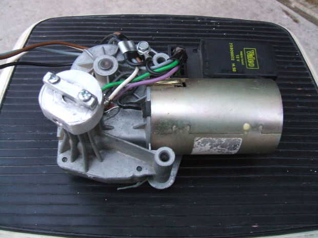 En este diseño hay 4 cables que salen de la Asamblea: blanco, negro, gris y marrón. Conectar los cables blancos y gris a una línea positiva de 12 voltios, a la vez que está conectado a tierra la línea negra, alimenta el motor a funcionar continuamente. Si se desconecta el cable gris y los cables marrón y blanco están conectados a la línea positiva, mientras que la línea negra es conectado a tierra, el motor funciona sólo lo suficiente para volver el limpiador a la posición de reposo y luego se detiene automáticamente.