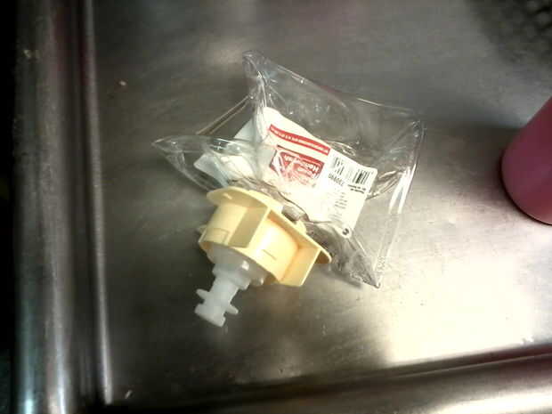 El jabón está vacío. OK Haz otro no más o simplemente no limpia bien. Tal vez usted no como todo tirar luego rellenarlo, pero es desechable y cant. Oh pero se puede con el tiempo de dos minutos.