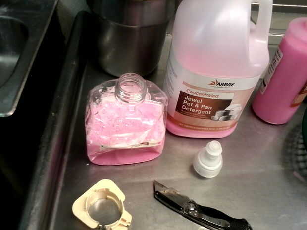 así que mi esposa le encanta el Lysol No-Touch dispensador del jabón mano pero las recargas son romper el Banco...Hay otro instructivo que habla de quitar la tapa pero terminó rompiéndolo y tuvo que esperar para que el próximo a ejecutar para probar