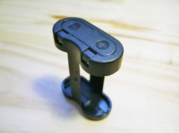 2. Gire la célula hasta los grupos de metal que conecta la rotura de las baterías.