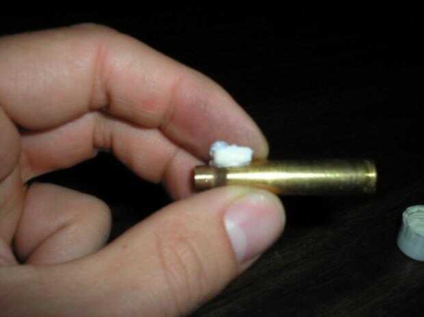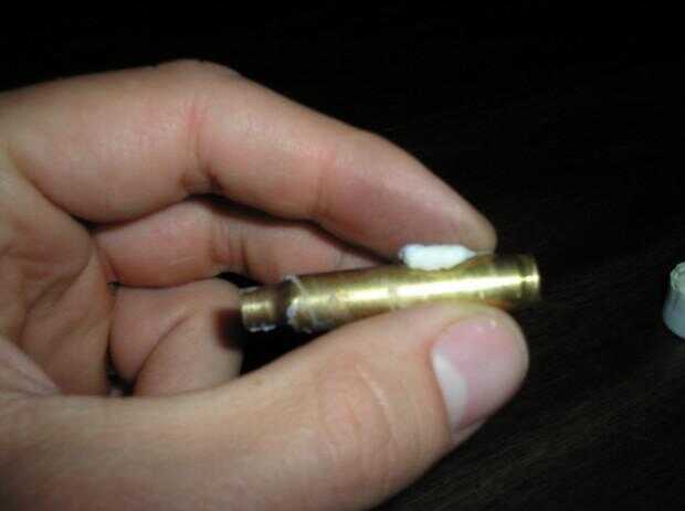 Poner una pequeña cantidad de lubricante de la cubierta de la carcasa de latón limpiado.