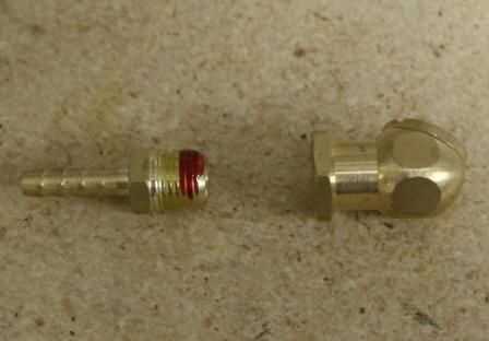 Poner un sellador de roscas en el 1/4" Barb X 1/4" conexión MPT y montar la tirada de aire (válvula del neumático) y encaje.
