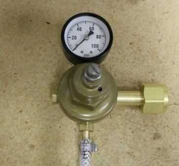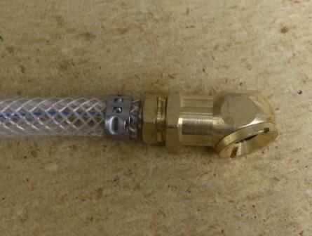Deslice un extremo de la manguera en el conjunto de mandril de aire y el otro extremo en la salida del regulador del CO2 y asegure con dos abrazaderas.