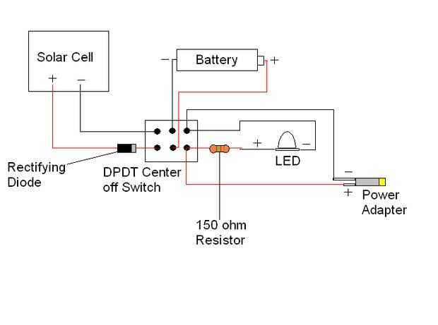 Tiempo para busto de la soldadura de hierro! Lo alambré según el diagrama adjunto. Si le gustaría renunciar el aspecto recarga solar, consulte el esquema adjunto SPST. Aviso el cableado del centro-off interruptor de DPDT es diferente que un interruptor DPDT normal. Además, he encontrado el adaptador del cableado para el cable bastante susceptible. Tenga mucho cuidado para soldar tan limpio como sea posible y no utilizar demasiada soldadura, como esto hará que sea difícil para la vaina de plástico sobre él...
