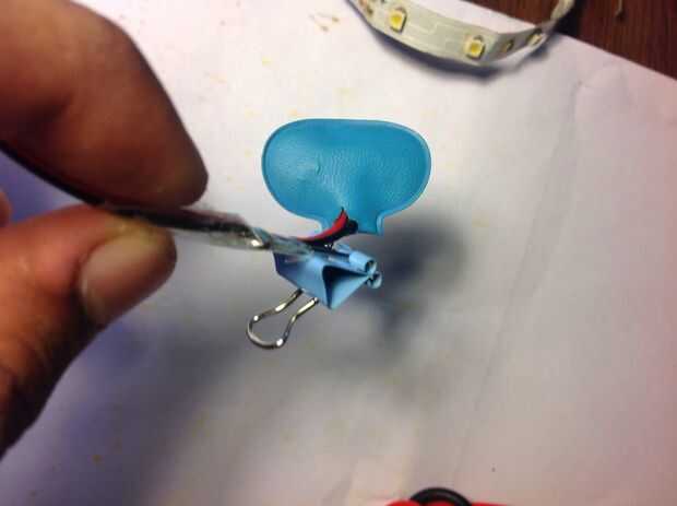 A energía la tira de LED con una batería de 9v recargable de alta potencia. Debido a esto los LEDs va a durar no más de 3 horas, pero para mí, eso es suficiente. Puede utilizar bancos de potencia (hechos para los teléfonos) en su lugar, pero darán solo 5v, que no fue suficiente para mi tira de LED que necesita por lo menos 8.2v a ejecutar.