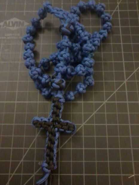 Mi hijo tuvo que hacer un rosario de cosas que estaban alrededor de la casa. Tuercas y arandelas, legos, palomitas etc.... todo hecho antes. Mi esposa vio que un florero lleno de turcos cabeza nudos que he atado sobre los años y que era él.En cuanto