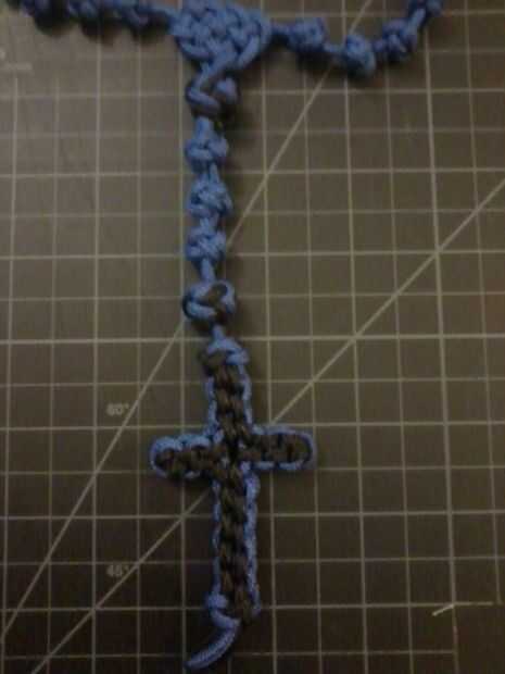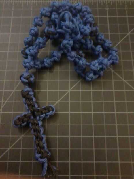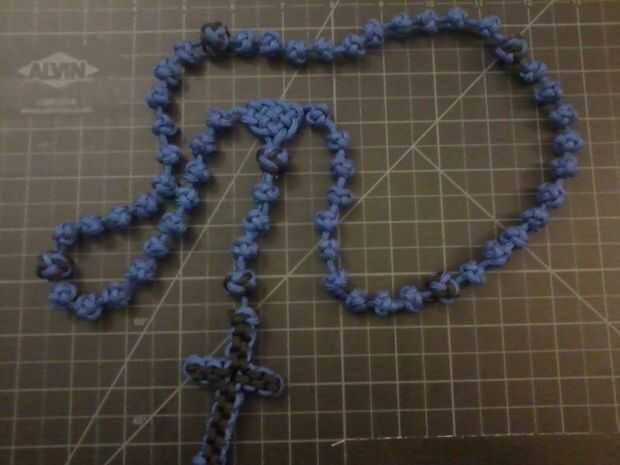 Mirando hacia atrás a una persona siempre tiene visión 20/20. Con eso se dice que habría elegido un nudo diferente a 50 de los tiempos. Atar un botón celta 54 veces es muy lento. Si fuera atar otro Rosario, yo hubiera elegido el talón ranger hecho de paracord para las Avemarías.