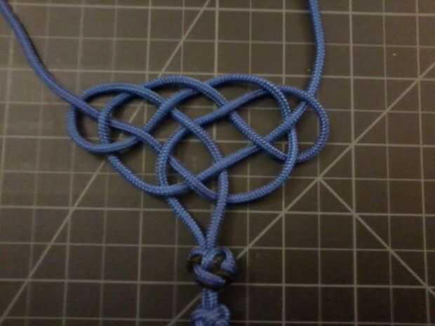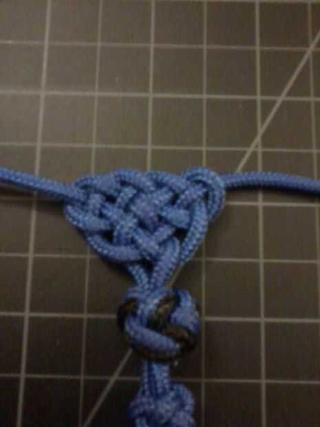 Este es mi nudo favorito de esta pieza entera. El nudo del triángulo fue desarrollado por JD. Publicó cómo atar a su youtube channel TIAT o Tyingitalltogther. Simplemente me rendí tratando de fotografiar este nudo porque es tan complejo y requiere de dos manos.