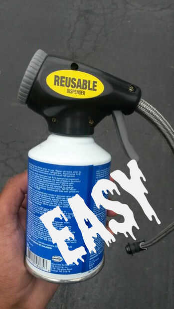 2. un medidor de presión/manguera con gatillo. Esto generalmente se vende con el refrigerante, pero son reutilizables y pueden adjuntarse a otras latas de 134a.