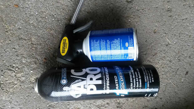 El manómetro manguera simplemente tornillos en la parte superior de la lata. Tiene la aguja para permitir que el freón al flujo a la manguera. Habrá un punto en la rosca donde de repente se pone más estricta - en este punto, pinchazos de la aguja la puede. Trate de colocar las manos para atornillar el siguiente pocos hilos rápidamente para minimizar las fugas desde la parte superior de la lata. Una vez conectada la manguera, maneje con cuidado la lata. El refrigerante fácilmente puede causar quemaduras al contacto con la piel.