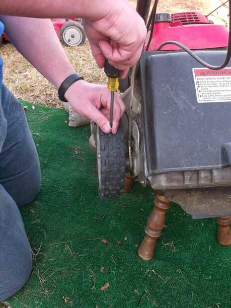 Paso 3: Atornille la bicicleta pisada para el neumático del cortacéspedes