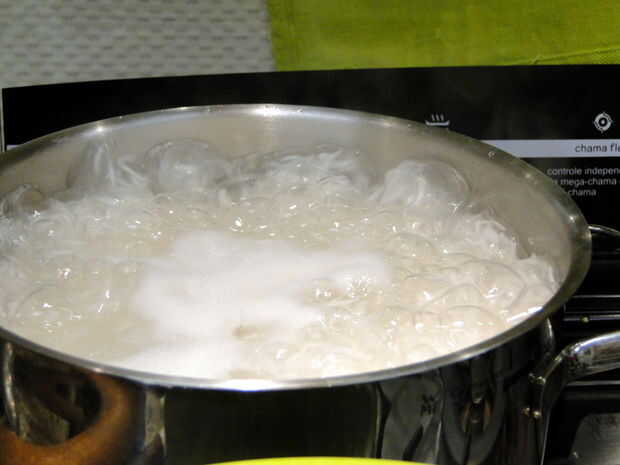 Em seguida, acrescente un água (que un essa altura já deve estar fervendo)