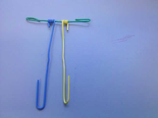 Usted necesitará los tres clips que hemos utilizado hasta ahora. Vas a tomar los clips más largos y coloque el extremo que no tiene un gancho con el clip de la pieza de frente. Ver las fotos para una mejor ilustración. Entonces envolverá ambos apretadamente alrededor de ese pedazo de delantero.