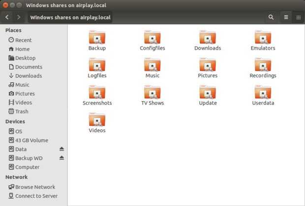 El primero uno (AirPlay) es el ssh server. Si no lo tienes habilitado en OpenELEC, obtendrá una conexión rechazada por error de servidor. El ssh server puede utilizarse para examinar el sistema de archivo entero de la Pi, pero no necesitamos eso. Sólo necesitamos la carpeta de 'Actualización', que es compartida con Samba (parte de Windows), así.