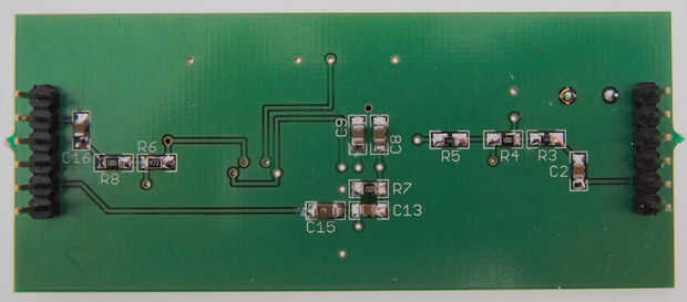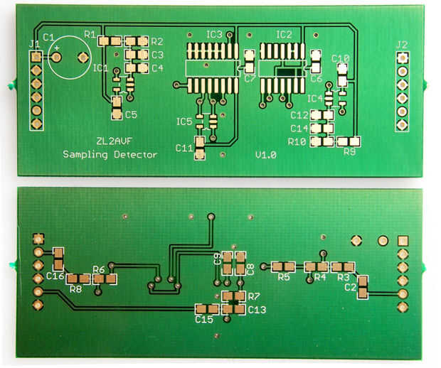 Vistas superior e inferior del tablero del circuito antes y después de él se ha montado.