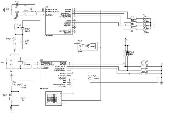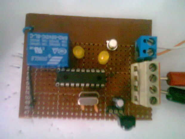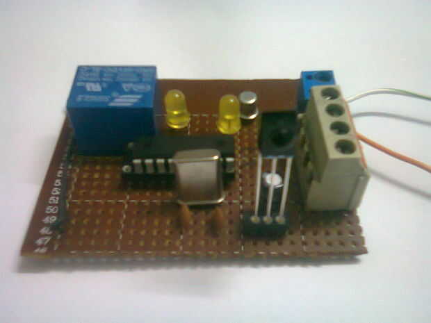este proyecto está basado en un microcontrolador PIC16F84, Se ha añadido un relay 5vDC en este receptor para encender o apagar una luz desde un control remoto.