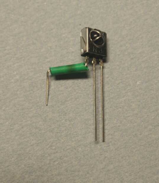 Después de usted necesita agregar un pedacito del encogimiento del calor (o cinta) a la parte horizontal del receptor IR.