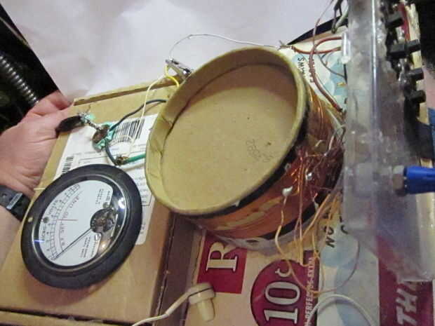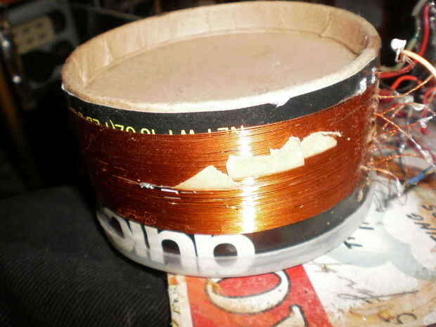 La bobina fue hecha con 22 alambre awg cubierta envuelto alrededor de un tubo viejo de estilo Quaker Oats / contenedor, cortar a la medida.