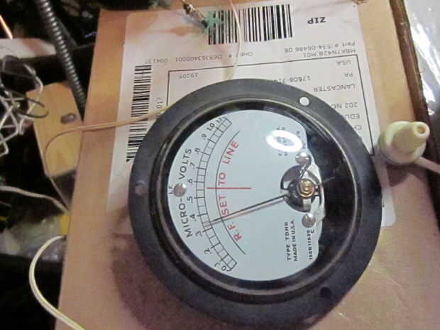 Dos de los cuadros demuestran un metro uatado para efectos de demostración. Demuestra que pocos microvoltios son todo lo necesario para una emisora de radio muy cerca.