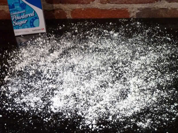 El azúcar en polvo se utiliza para evitar la masa pegajosa, así que realmente sólo necesita una pizca de él.
