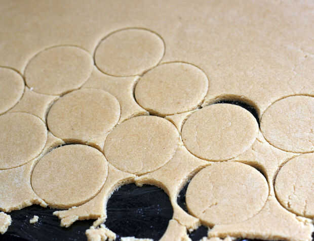 Para hacer un patrón de mantequilla de Nutter en las galletas, coloque cualquier restos de masa restante en un tazón. Mezclar con la mano o batidora añadiendo agua caliente, una cucharadita a la vez.