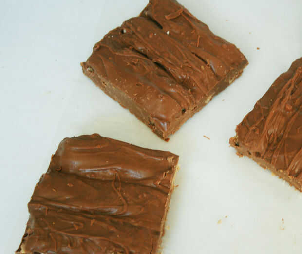 Arreglar las barras que se corta aparte en el paso 5 sobre la capa de chocolate.