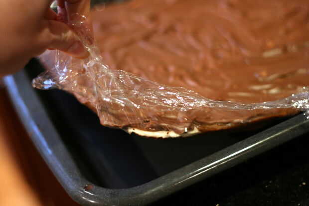 -El retorno del bloque en el congelador para resolidify, que cortes mucho más ordenado cuando firmemente congelados.