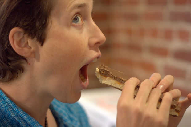 -Corte a través de sus tiras, ajuste la longitud de las barras de Snickers terminadas. Mis estudios han demostrado que son un buen tamaño para merendar, pero usted puede ir para un tamaño más tradicional de la barra de caramelo completo dependiendo de que usted está planeando para darles de comer a!