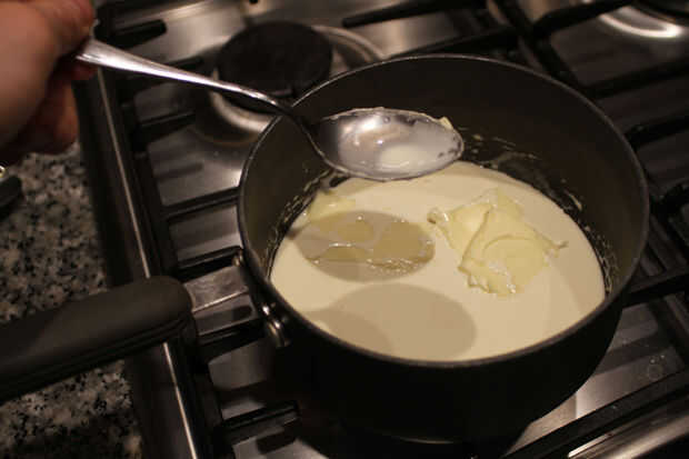 Dejar la mezcla se enfríe a temperatura ambiente, luego coloque en el refrigerador para que endurezca.
