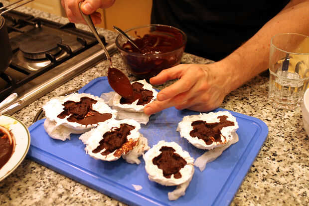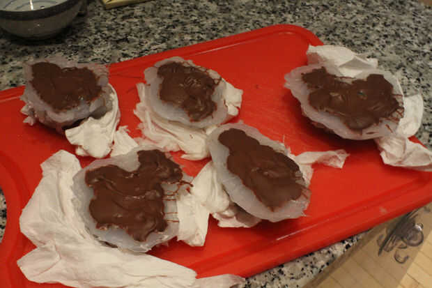 Volver los moldes al refrigerador hasta que el chocolate está completamente establecido.
