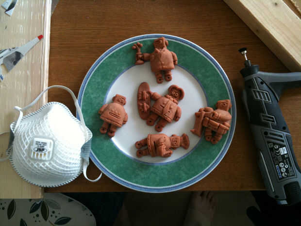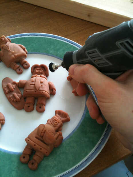 Si te sientes tan inclinada, utilice una herramienta giratoria Dremel para suavizar asperezas ni rebabas no deseadas en los modelos. Asegúrese de usar una buena mascarilla, ya que realmente no quieres inhalar el polvo de arcilla.
