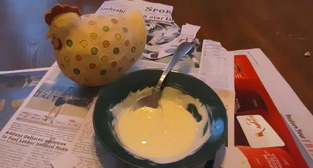 También necesitarás un recipiente grande, (uso uno con lados altos para que no salpiquen arcilla en tu armario), una batidora eléctrica, una taza y una cucharada de medida. Para mantener t que terminó arcilla seque, usted necesitará un contenedor hermético. La receta es para aproximadamente 1 cuarto de galón de arcilla de papel maché. Nota sobre papel higiénico: por desgracia, las personas que hacen el papel higiénico no esperan para convertir su producto en grandes obras de arte, por lo que ven ninguna razón para incluir el tipo de información que haría las cosas mucho más fácil para nosotros. Yo uso una marca llamada "Angel Soft," en los rodillos 2-ply "regular". Comprarlo en mi Wal-Mart local. Cada rollo contiene aproximadamente 1 1/4 de taza de papel, que me mide mojando el papel, exprimir el agua, y luego aplastar firmemente en una taza de medir. Puesto que las marcas difieren mucho, es la primera vez que haces esta receta que debe tomar unos minutos para saber cuánto papel en el primer rollo. Luego, ajustar la receta si tu marca no contiene alrededor de 1 1/4 taza de papel. Afortunadamente, esto no es un experimento de química o ciencia de cohetes, si la mezcla contiene un poco más papel que el mío, o un poco menos, todavía sus esculturas ser impresionante.