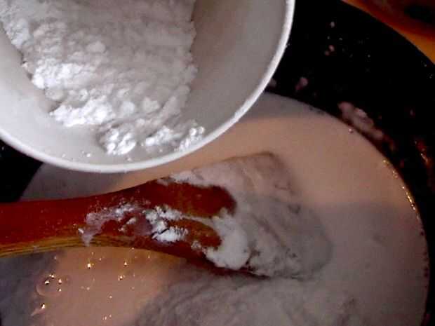 La mezcla de harina de maíz con agua hasta que quede libre de grumos. Agregue pegamento de pva y aceites. Mezcla hasta que quede suave.