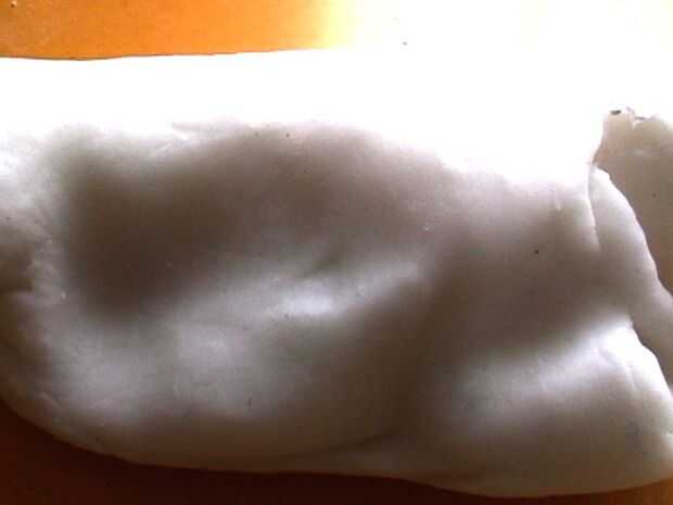 Guantes que deberá amasar la arcilla caliente hasta que quede textura suave como en el video y la imagen a continuación. Trato de no añadir demasiada harina (después de la cocción), se convirtió en la masa pegajosa.