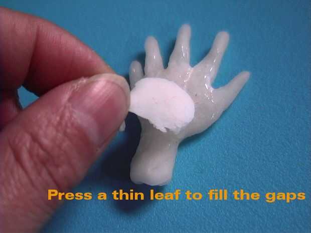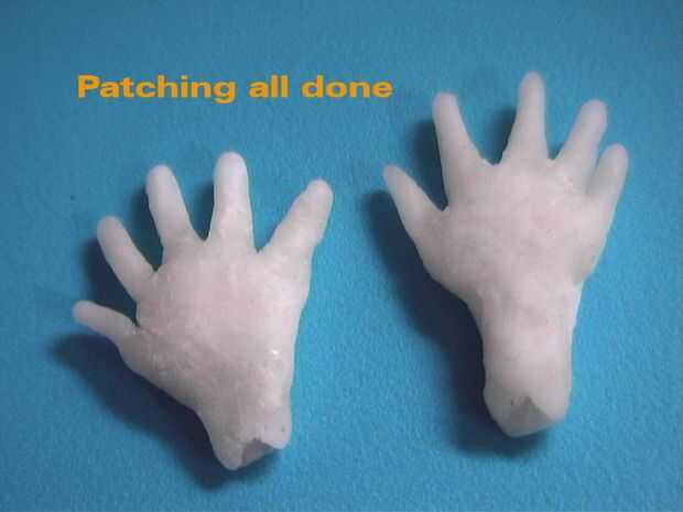 * Me encontré con que mis piezas flor finamente laminados agrietado menos las cabezas esculpidas que había formado y además músculos faciales piezas comenzaron a agrietarse en las articulaciones. La próxima vez usaré pva pegamento para alisar las juntas correctamente.