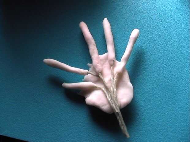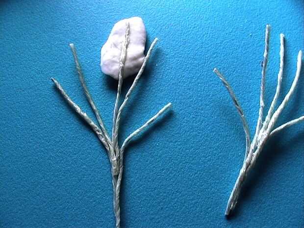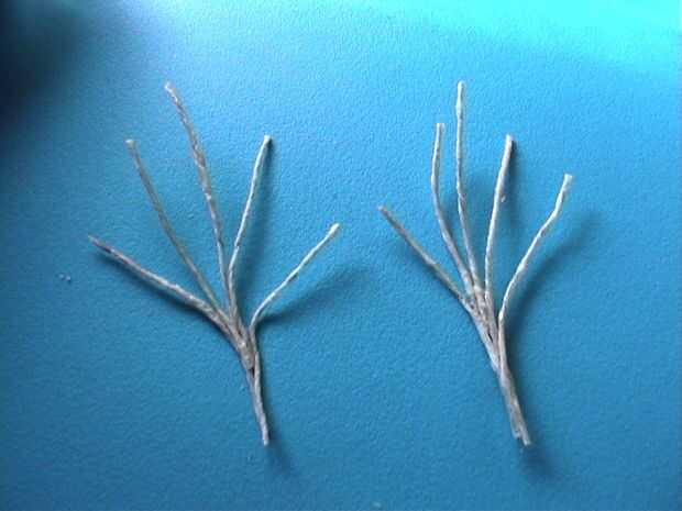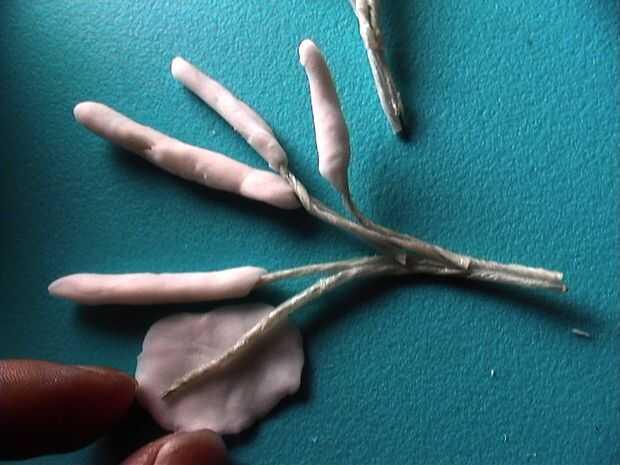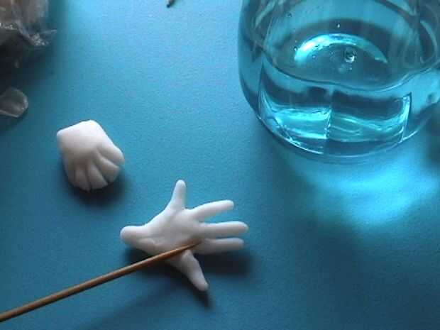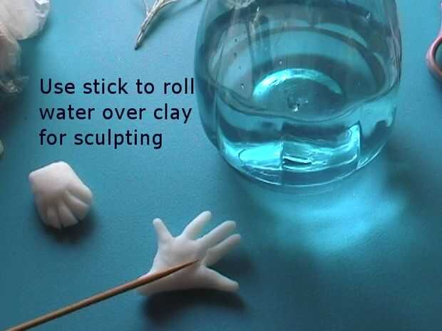 Los cables se peguen fácilmente. Rollo de piezas delgadas alrededor de los cables para los dedos. Utilicé un palo sumergido en el agua para un mini rodillo para esculpir y moldear la arcilla más abajo.