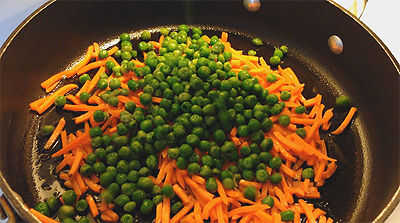 Ahora, añada 1 taza de descongelado a arvejascongeladas y rápido revuelo así. Ellos realmente descongelación bastante rápido. Normalmente llevamos 2 horas antes de cocinar.
