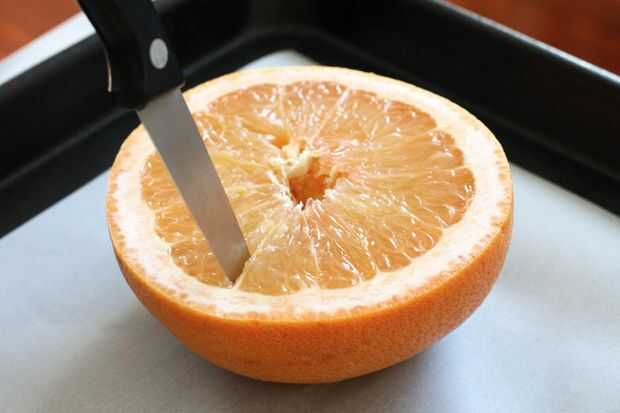 Paso 2: Cortar el pomelo por la mitad y prepararlo