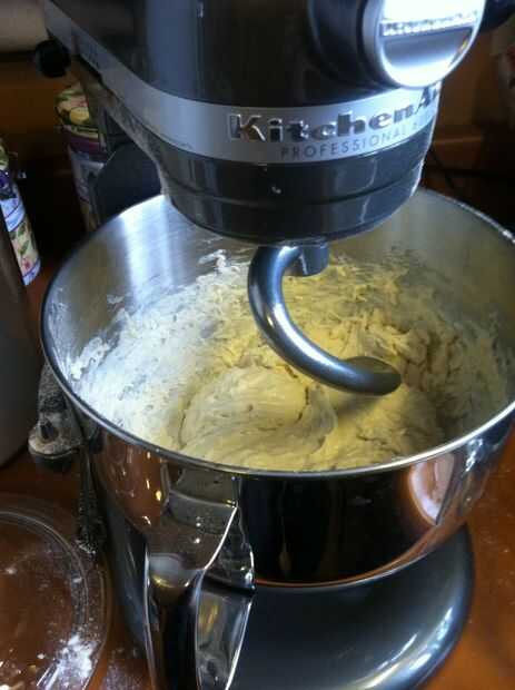 4. Retire su aditamento para la batidora y reemplazarlo con el gancho para masa. Su gancho para masa de aceite para que la masa no pegan y subir demasiado la batidora.