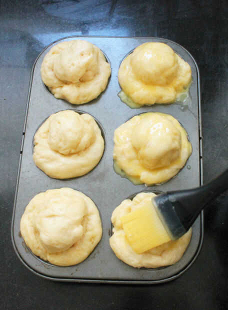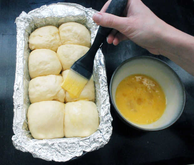 Crear un lavado de huevo para ese acabado especial en sus bollos. Bata las restantes 2 yemas y 1 huevo entero con una pizca de sal. Cepillo liberalmente en la parte superior de los bollos. Huevos lavados no comportan del modo que quieras - son muy onduladas y difíciles de controlar. Sólo ir con él y unte ese pan de yemas de huevo y entender que no puede controlar todo en la vida.