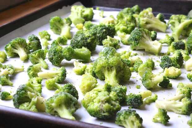Extendió en la hoja de hornada - si usted tiene cargas de brócoli, usted puede espaciar en dos hojas para hornear. Apretadura demasiada brócoli en una sola hoja hará vapor más que asado, así tenlo en cuenta!