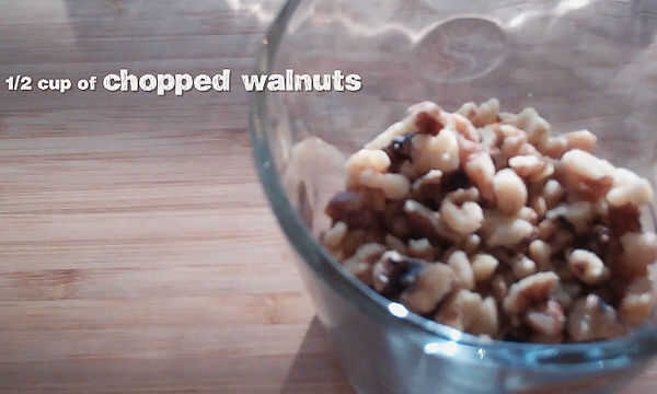 A la masa de brownie completamente mezclado , añadir una 1/2 taza de picado nueces. Asegúrese de incorporar, muy bien.