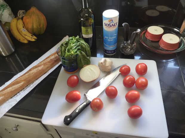 Asar a la parrilla no siempre significa carnes y costillas.A veces nos gusta usar el grill para tostar rebanada de pan francés rondas para un aperitivo de pan tostado.La clave para gran bruschetta es con ingredientes frescos y aceite de oliva extra v